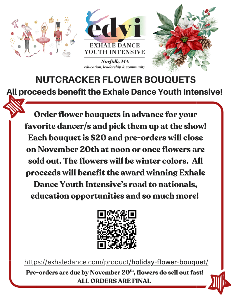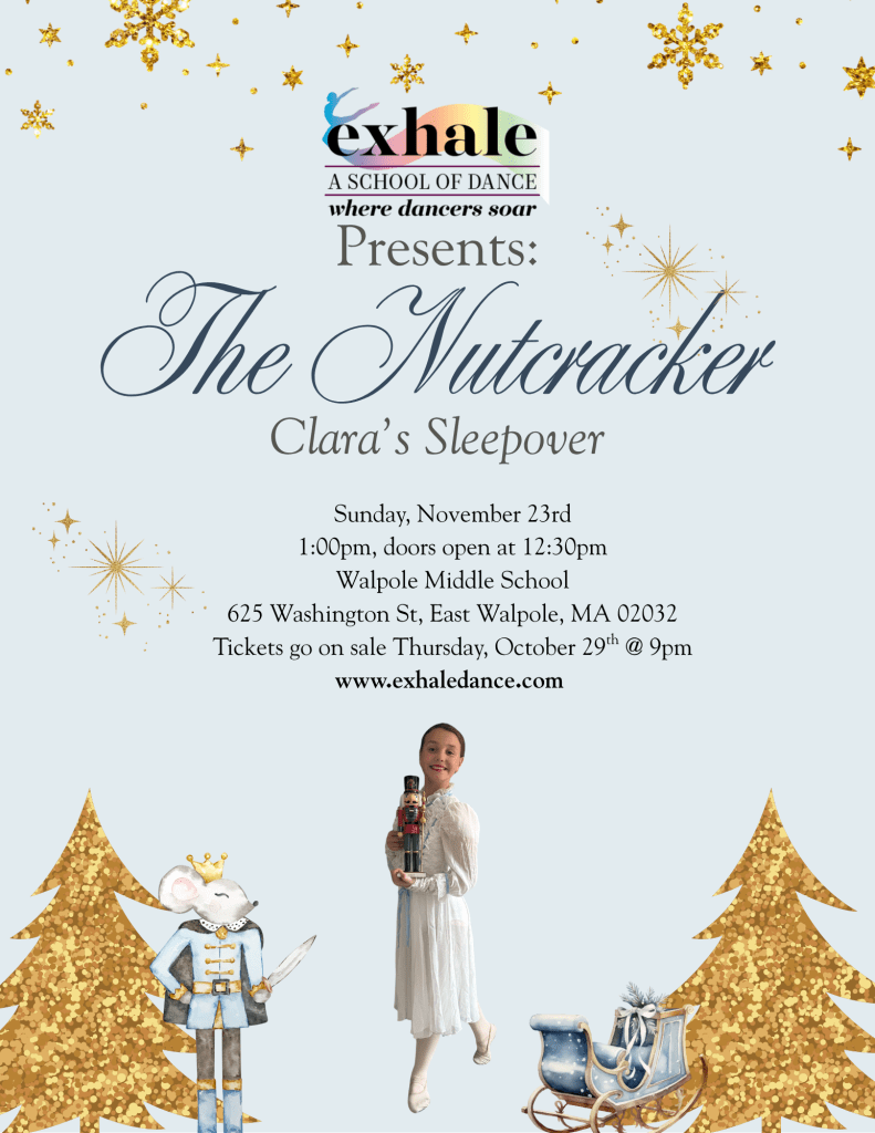 Exhale produces a Nutcracker each season season entitled, Clara’s sleepover! The audience enjoys a performance based on the story of the Nutcracker. This spin on a holiday tradition is told through jazz, ballet, contemporary, tap, modern and hip-hop dance. This jazzed up version of the Nutcracker always gets the Norfolk Community toe-tapping into the Holiday Season! The show is usually held the first or second Saturday in December and registration for performers opens in August.